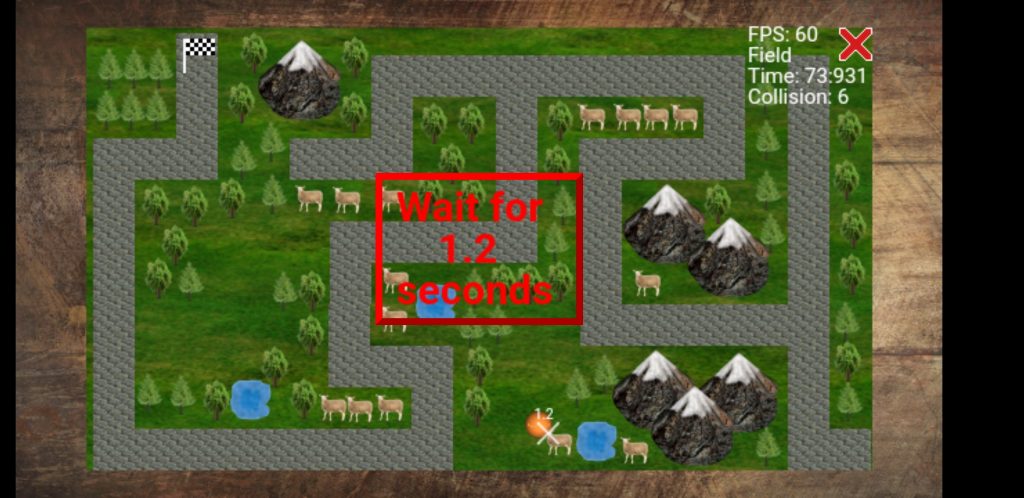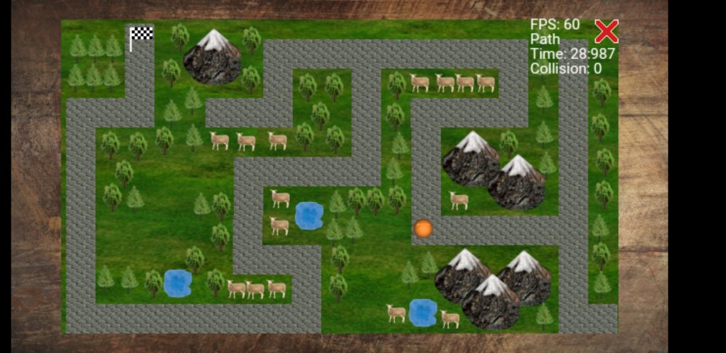 There are paths and green spaces. The controls are precise on the paths and react immediately to the inclination of the mobile phone. In the green areas, the control is delayed and difficult to calculate.
